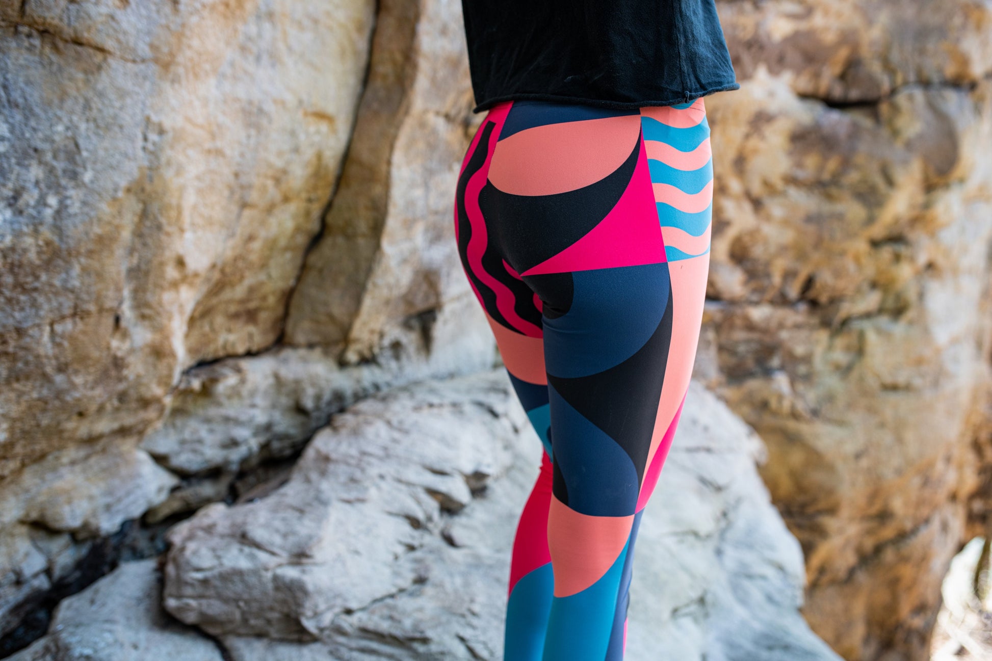 Welcome the newest design in Dynotights athleisure wear! The bold colors of these leggings reminded me of tidal waves from a sci-fi world, hence the name magenta tides! Leggings are made of an 82% polyester 18% spandex blend and feature a stretchy elastic waistband. They're sewn by hand here in the USA!