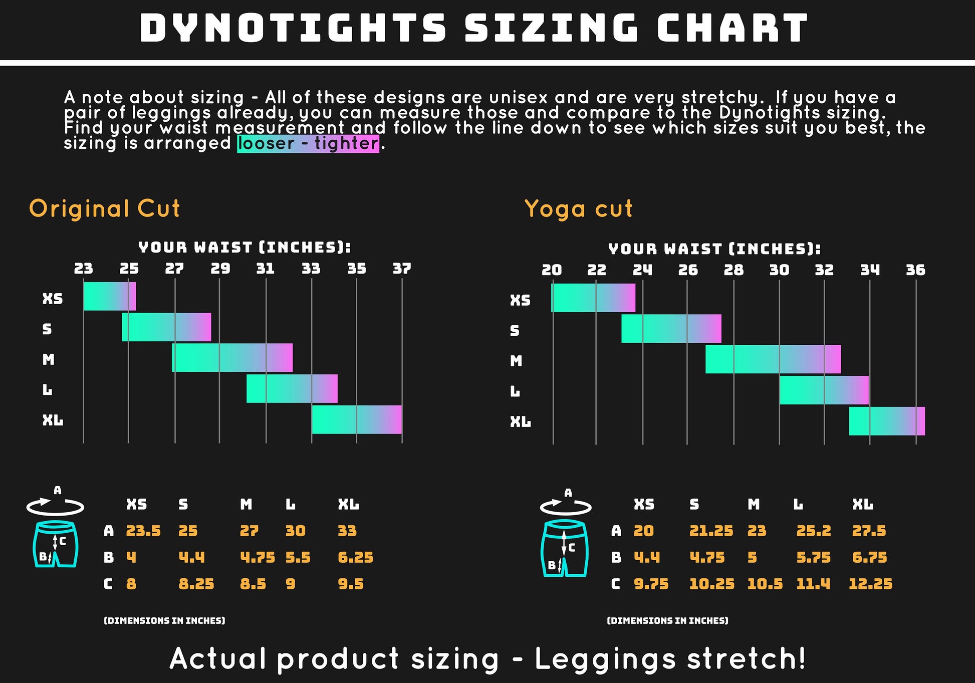 ---------- SIZING ---------- PLEASE SEE THE SIZING INFORMATION IN THE PHOTOS Size up if you are between sizes or at the upper extreme of a size! The material will stretch, and the sizes below are approximate. Model in photo is 5'7" 120lbs 26" waist and is wearing size S in the high waist cut. Placement of pattern varies, designs when printed may not look exactly like example.